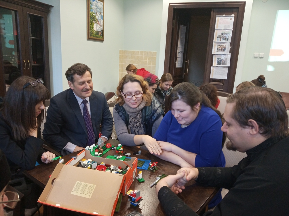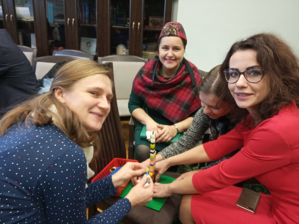 Работа секции началась с мотивирующего момента – мастер-класса «Детско-родительские отношения: метод LEGO Serious Play – мозговой штурм в поиске нового видения решения проблем», который провела Галуза Алла Владимировна, кандидат психологических наук, доцент кафедры психологии Белорусского государственного университета. Участники секции в режиме групповой работы создавали модель образа ребенка с поведением, которое вызывает трудности у взрослого. В итоговой рефлексии мастер-класса прозвучали такие слова: «При помощи метода удалось под другим углом посмотреть на проблему взаимоотношения с собственным ребенком».