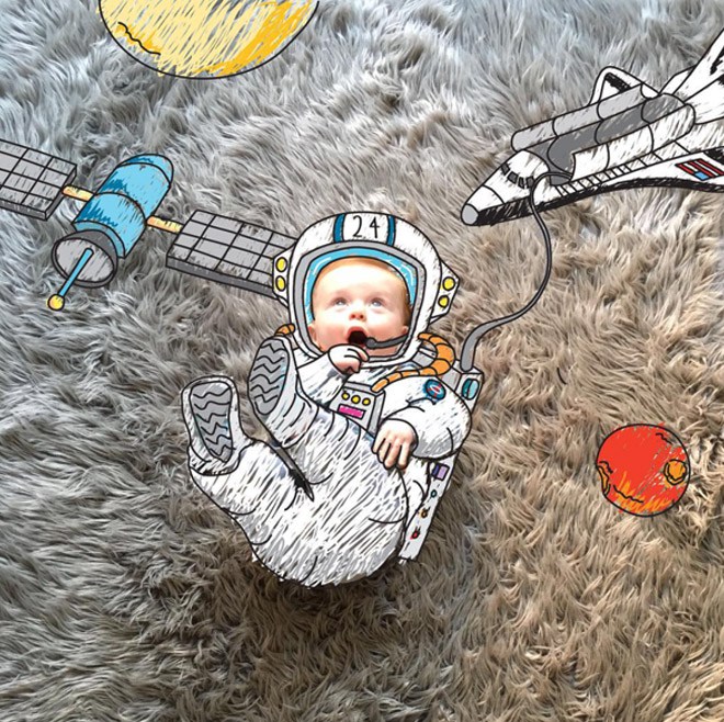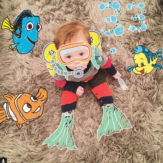 Но, даже если вы не профессиональный фотограф, и не умеете «схватить кадр», вы все равно можете устроить фотосессию вашему непоседе. Воспользуйтесь опытом молодого папы Дэйва Молдавон. Каждую неделю, со дня рождения сына Чарли, он публиковал у себя в Инстаграм остроумные и изобретательные снимки малыша, сделанные, словно в параллельном мире.